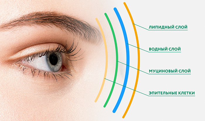 Слезная пленка, в отличие от слезы, имеет в своем составе липидный компонент, она четко структурирована и состоит их трех слоев:
